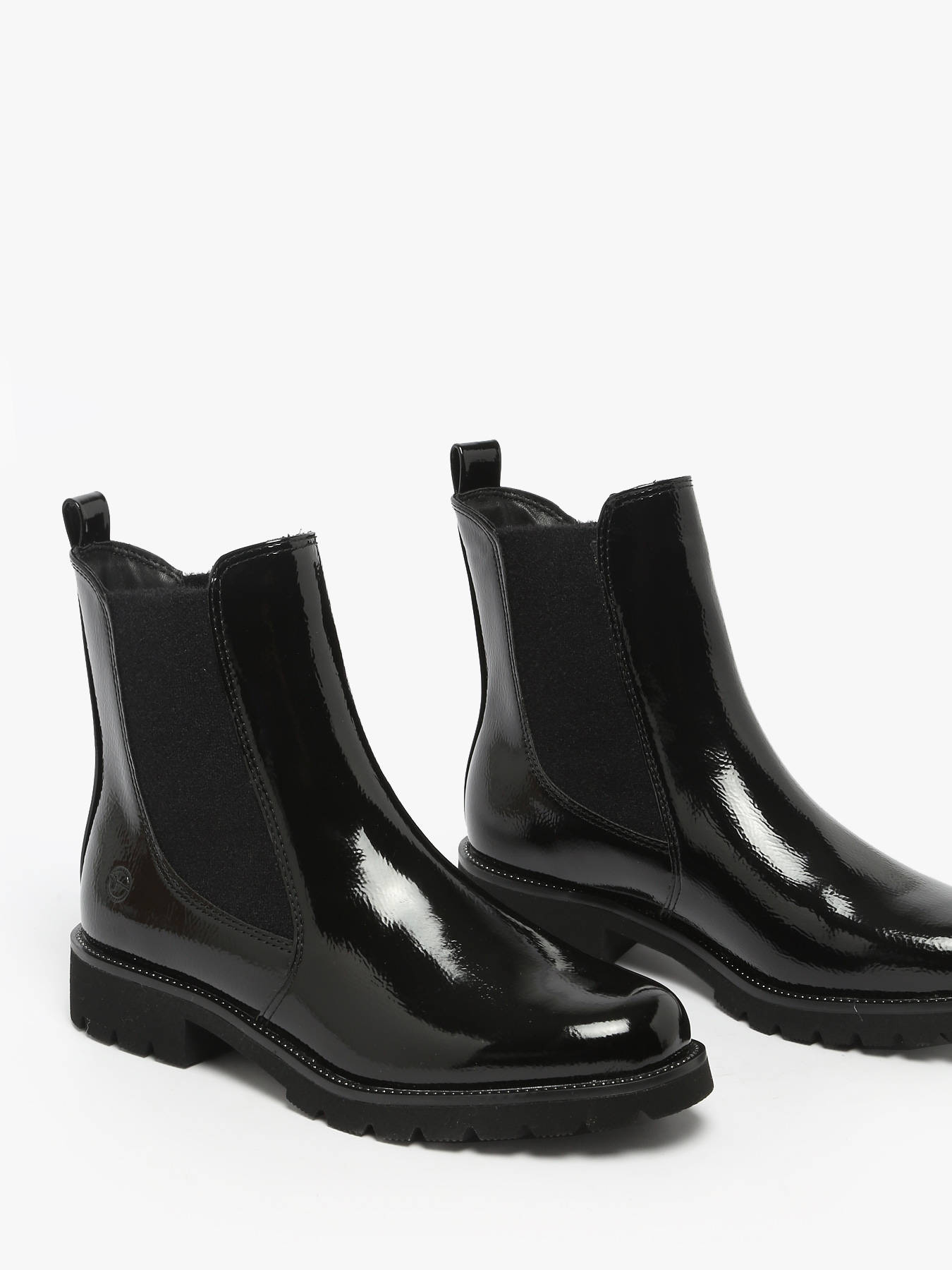Discover the freedom of your steps with these Tamaris synthetic Chelsea boots, available in patent black, perfect for autumn and winter, combining urban style with modern elegance. Their 3 cm block heel and thick sole provide comfort and confidence with every step, while the elastic panels and pull tab make them easy to slip on. Ideal for your active days, from the office to city strolls, these Tamaris boots accompany you with ease and character, reflecting your unique personality. Step confidently, express your modern urban style, and let these Chelsea boots elevate your look while offering comfort, support, and elegance in every situation.
