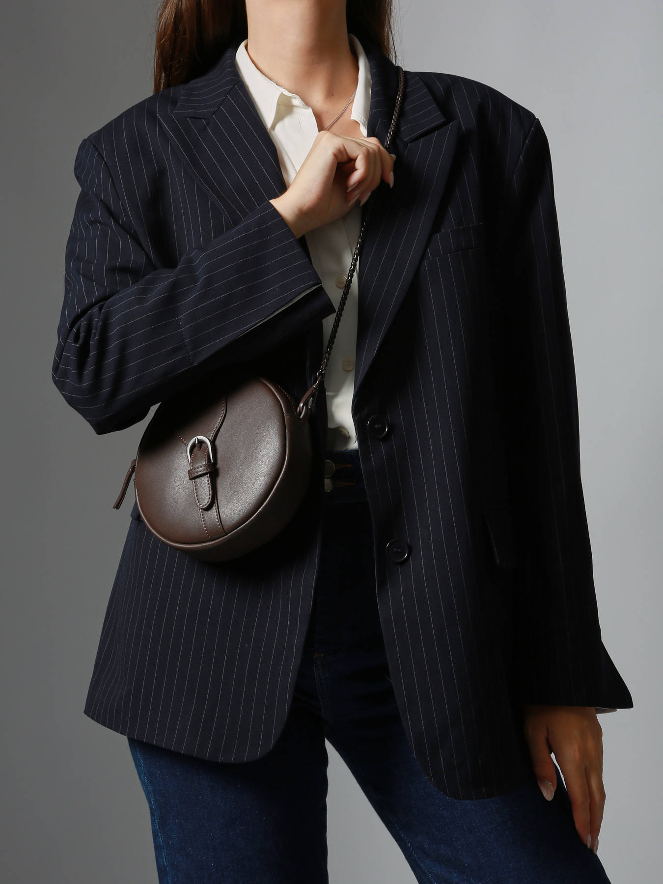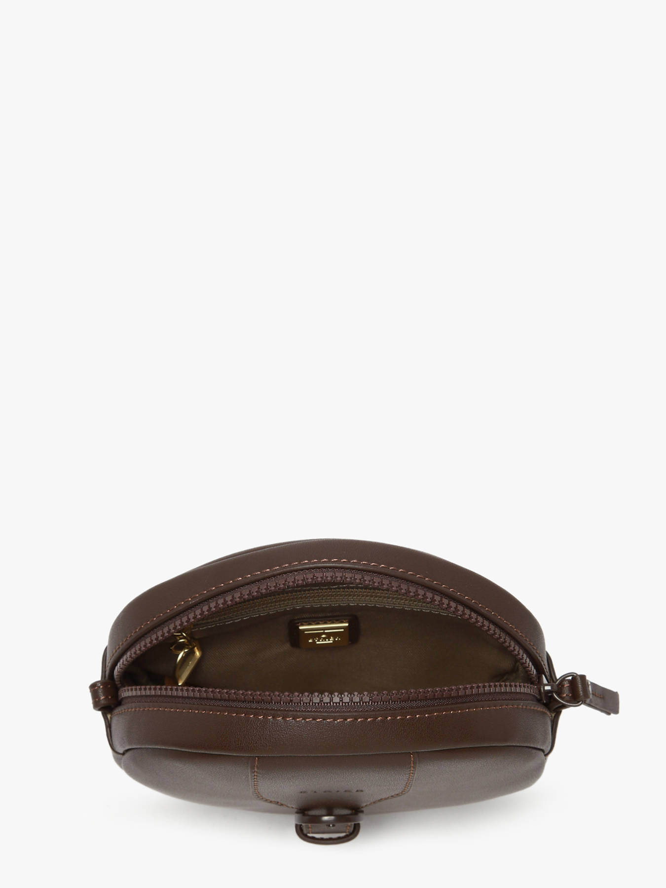 The ETRIER crossbody bag from the OXER line captivates with its round shape and elegant chain strap. Made of leather, it closes with a secure zipper and features a distinctive buckle on the front. Its practical interior includes a zippered pocket. Bold and modern, the Oxer collection stands out with a sleek design enhanced by tone-on-tone metal accessories, adding subtle sophistication true to the ""Highlander Cowboy"" spirit.
