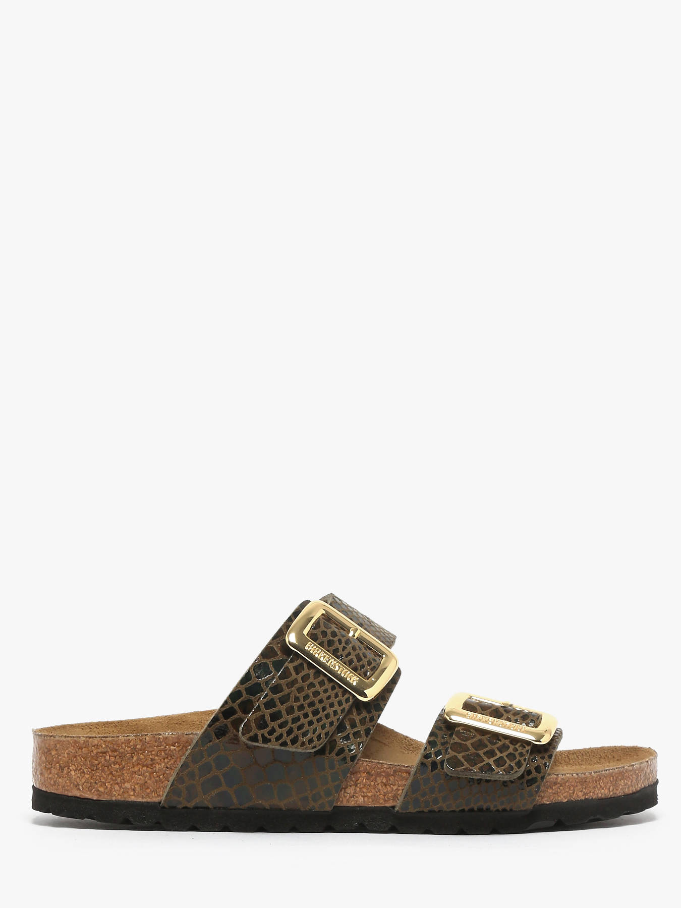 Les mules Sydney de BIRKENSTOCK prouvent qu’une sandale fonctionnelle peut aussi être élégante. Dotées de deux brides sobres, elles séduisent celles qui recherchent à la fois confort et style. Cette version au coloris Shiny Snake brillant apporte une touche d’extravagance avec son fini métallique irisé effet peau de serpent, inspiré de motifs naturels. Les boucles épaisses et brillantes aux bords arrondis, semblant matelassées, subliment le modèle. La tige est confectionnée dans une matière synthétique douce, tandis que le lit de pied anatomique en liège et latex assure un confort exceptionnel. La semelle de propreté en cuir velours et la semelle d’usure en EVA complètent cette mule raffinée et confortable, idéale pour un usage quotidien.