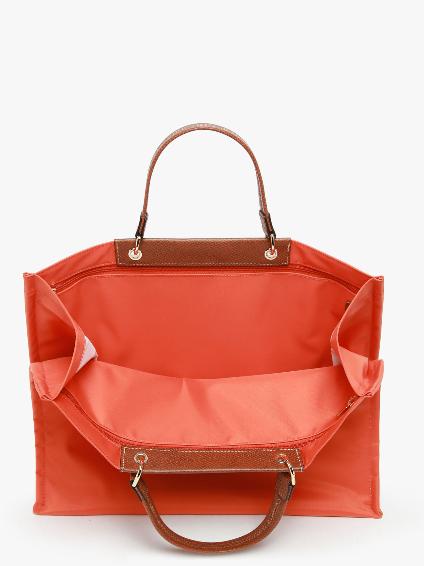 The L Cabas bag from Longchamp is the perfect model for an elegant and practical everyday life. Made of lightweight nylon with leather trim, it combines durability and flexibility. Its large size offers impressive capacity to carry all your essentials. The iconic leather flap, adorned with the famous snap button, integrates a sleek pocket for added functionality. Inside, two divisions, two zip pockets, and a spacious compartment ensure perfect organization. The lightweight and flexible nylon fabric is available in modern, seasonal colors, adding a fresh touch to the design while giving it a dynamic look. Elegant, practical, and timeless, this cabas bag reinvents the classic model with an urban and contemporary flair.